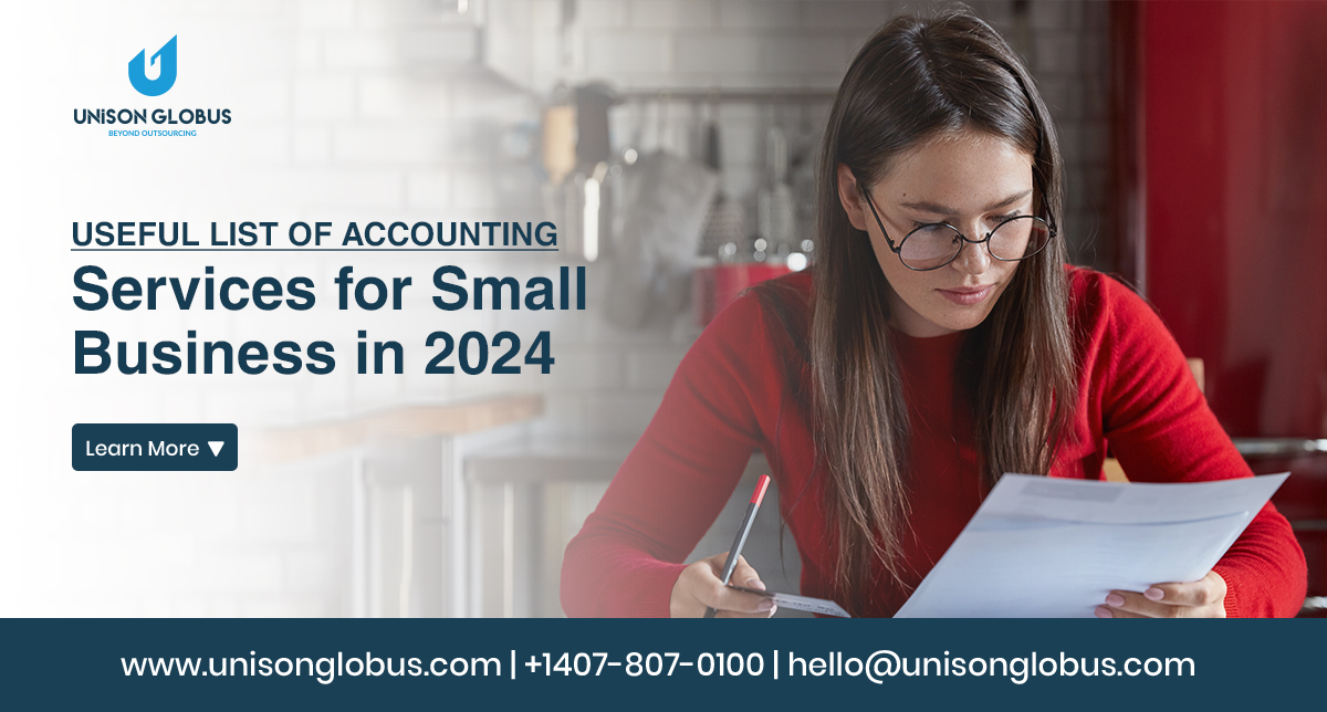 While outsourcing accounting might feel like a leap, it is a cost-effective solution for small businesses that lack the resources to hire full-time professionals. Unison Globus offers tailored solutions to simplify your accounting needs, helping you stay focused on your business goals. Below is a list of critical accounting services your small business can benefit from in 2024.